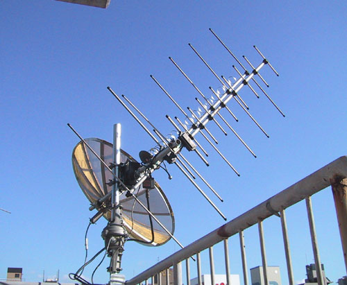 | 左から1000mmDISH(2400Mhz) 19ele Roup(1200Mhz) 7ele YAGI(144Mhz) 10ele YAGI(430Mgz) | |